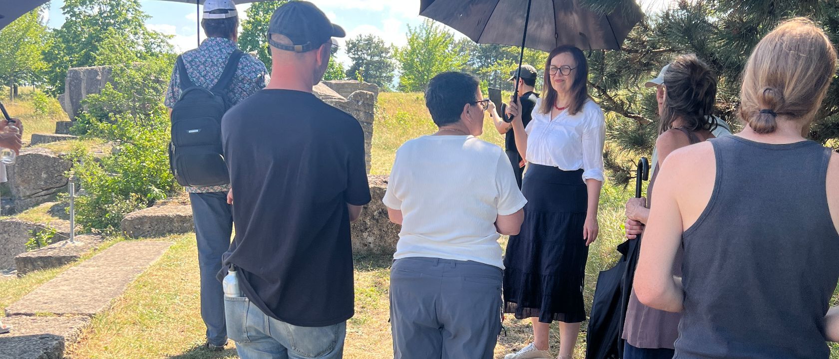 The key element was the live performance [ Reterritolized Spaces ] of SystemKollektiv which dealt with live data of movement and its visual transformation into an AR experience - another big leap for our research program. The performing artist Litto used her self-developed scanning technique (volumetric video generation), combined with a mirror and an AI depth generation tool. In collaboration with musician Manuel Cyrill Bachinger they performed a live set at the opening, where movement and echo sound were synchronized at Lindabrunns stone quarry.